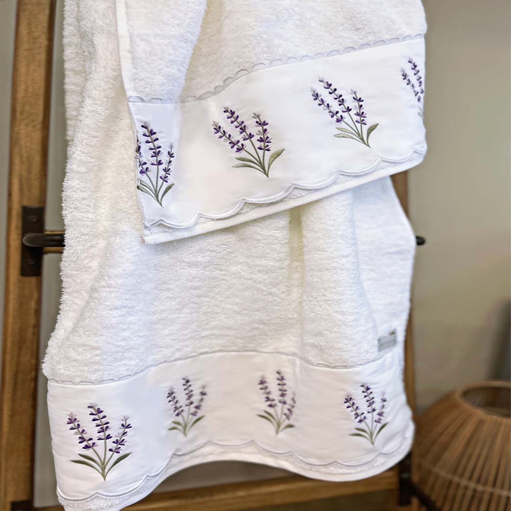 Jogo de Banho Lavanda – Coleção Le Jardin - Toalha de Banho Padrão e Rosto | Branca com Bordado Localizado | 100% Algodão | 2 Peças |
