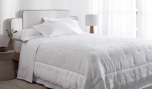 Contém: 1 colcha 3,10 m x 2,60 m + 2 porta-travesseiro - 50 cm x 70 cm + 8 cm de abas nos três lados