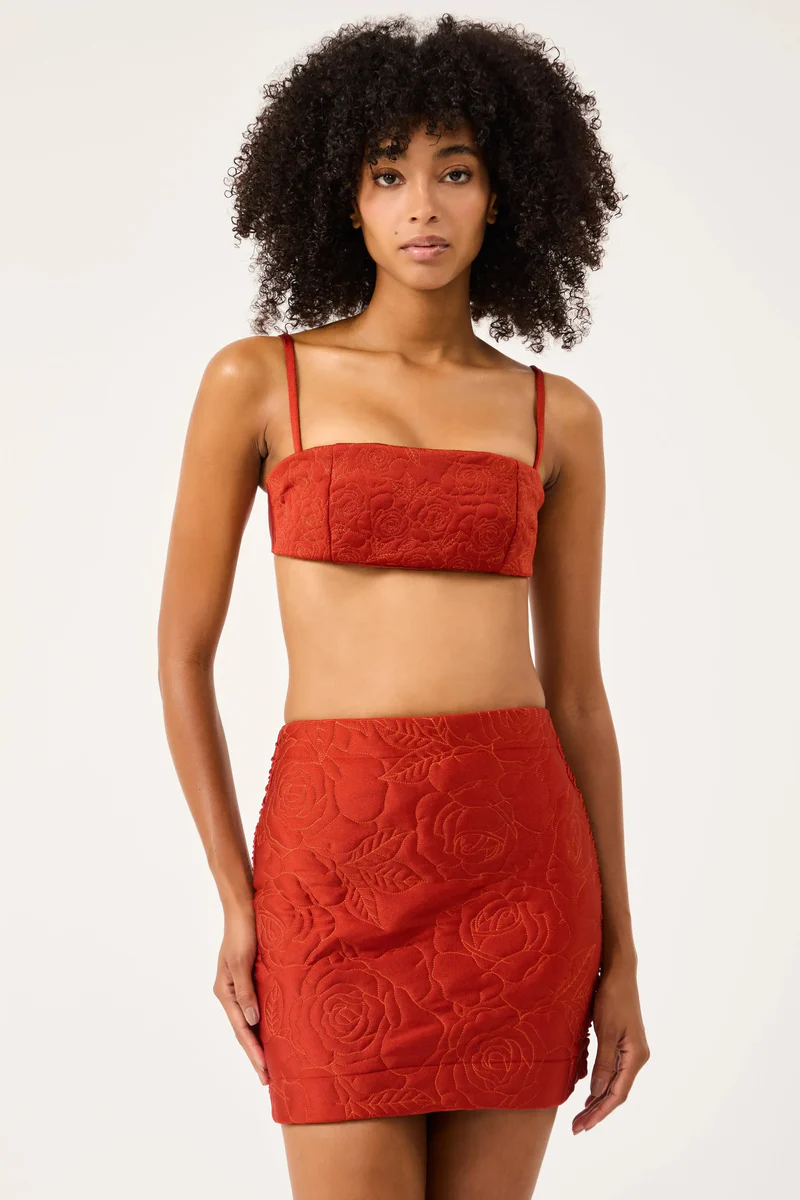 Descrição do Produto: A saia curta com bordado matelassê se destaca pelo delicado desenho floral, que adiciona textura e sofisticação à peça. O drapeado nas costas e levemente na lateral cria volume na medida certa, valorizando o visual. Sua modelagem ajustada acompanha o corpo, evidenciando a silhueta com elegância. Versátil, é perfeita para composições modernas e femininas. Ideal para quem busca um look marcante com detalhes refinados.